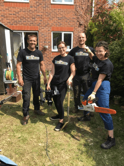 Kings Cuts Tree Services were featured on the BBC Dengineers TV show. We were tasked with reducing some trees and removing some plants, and replanting trees.